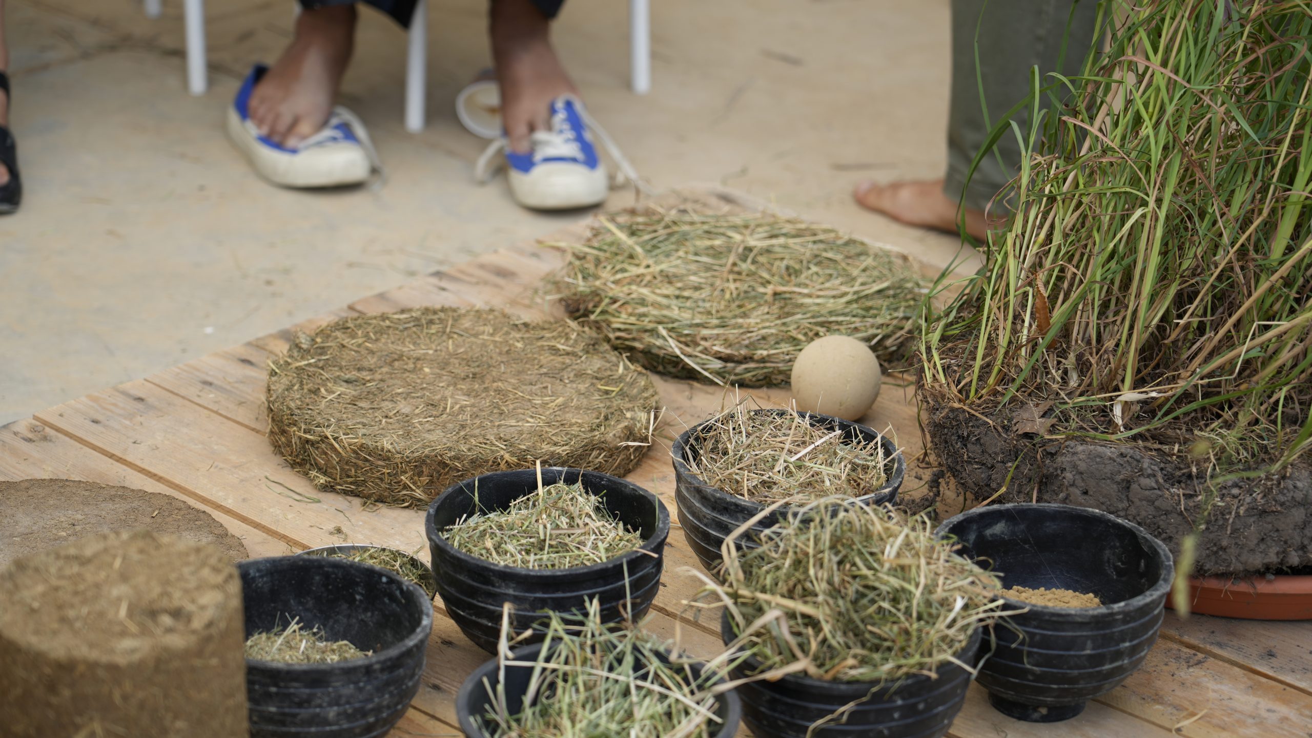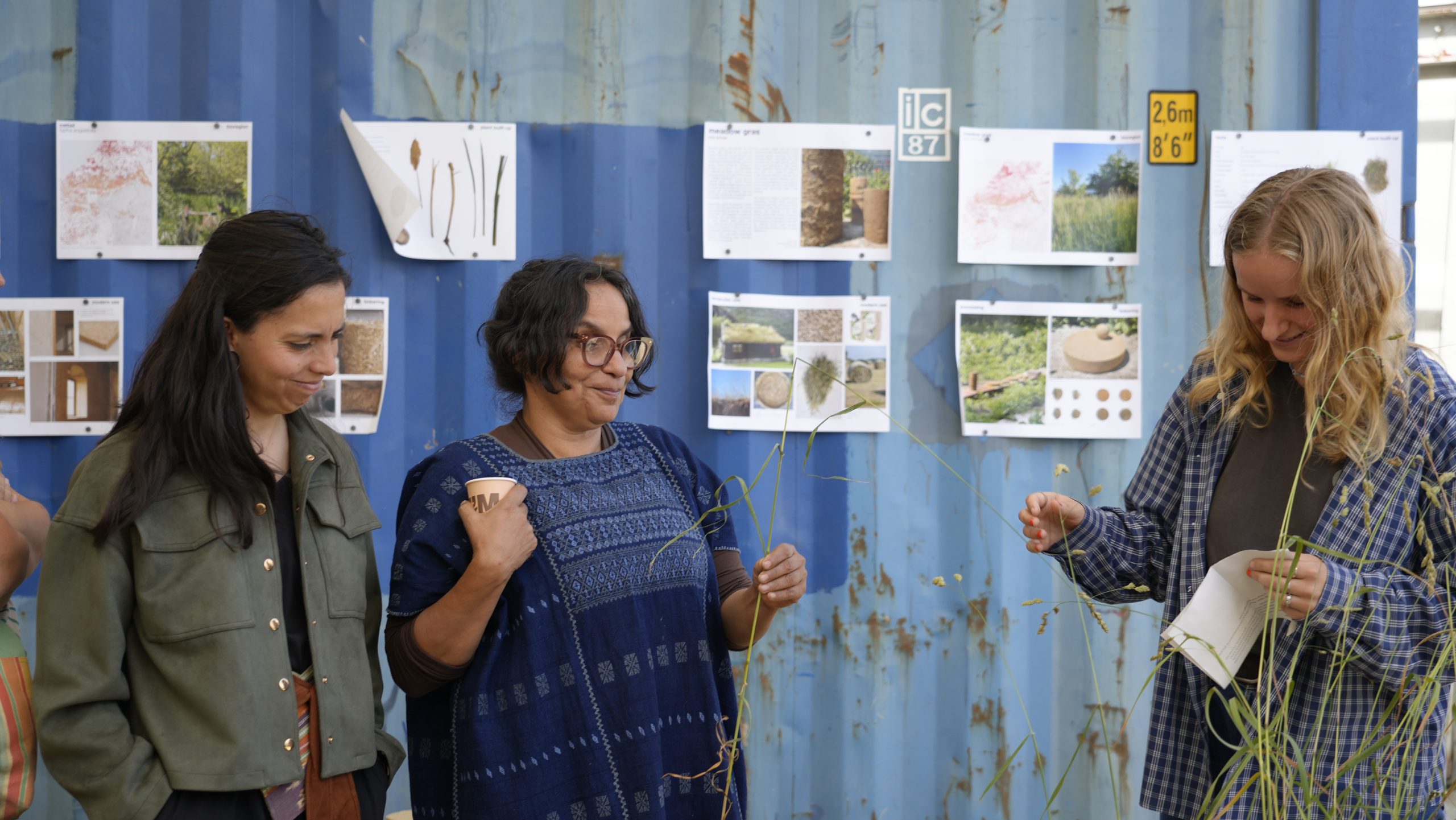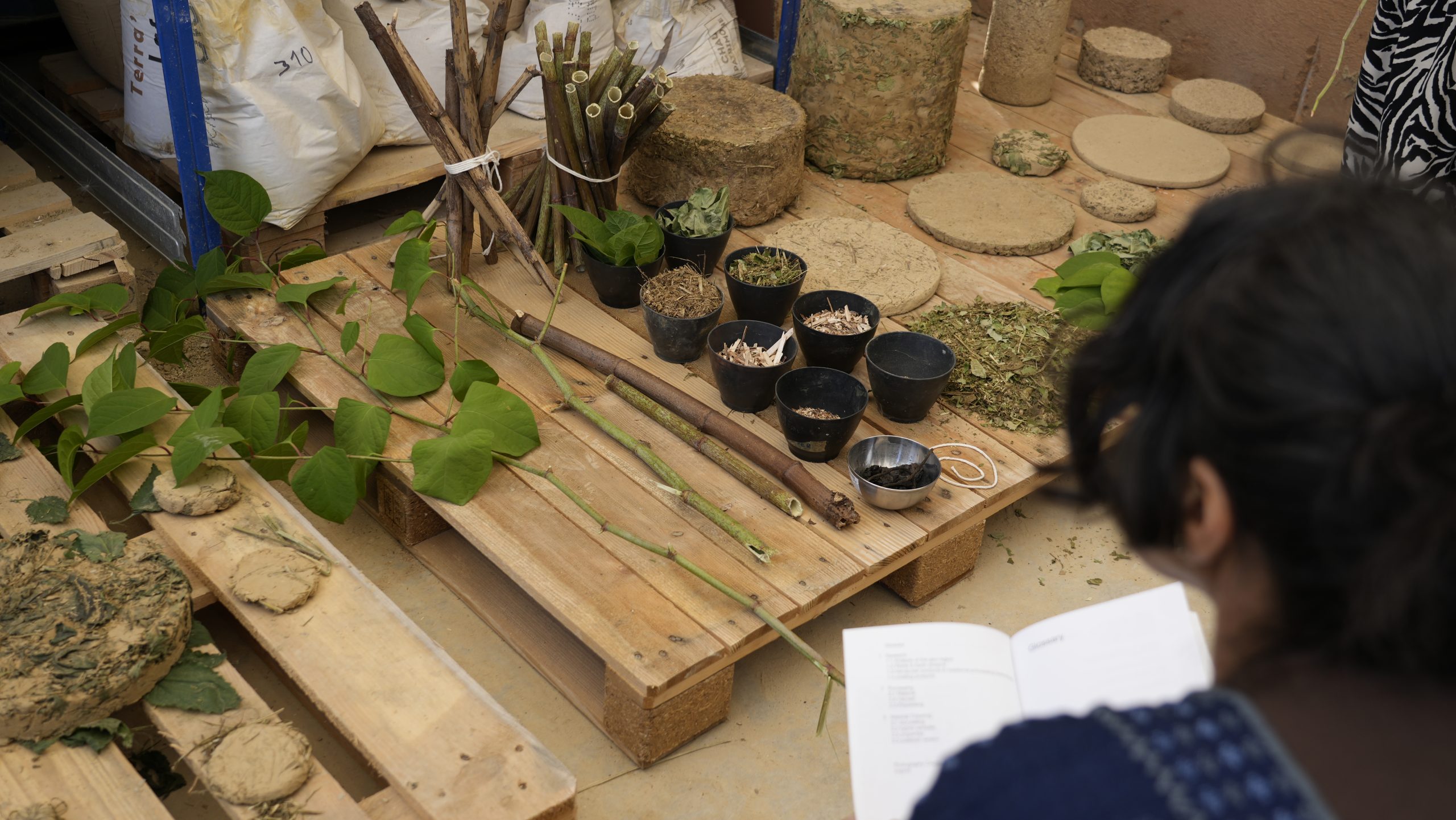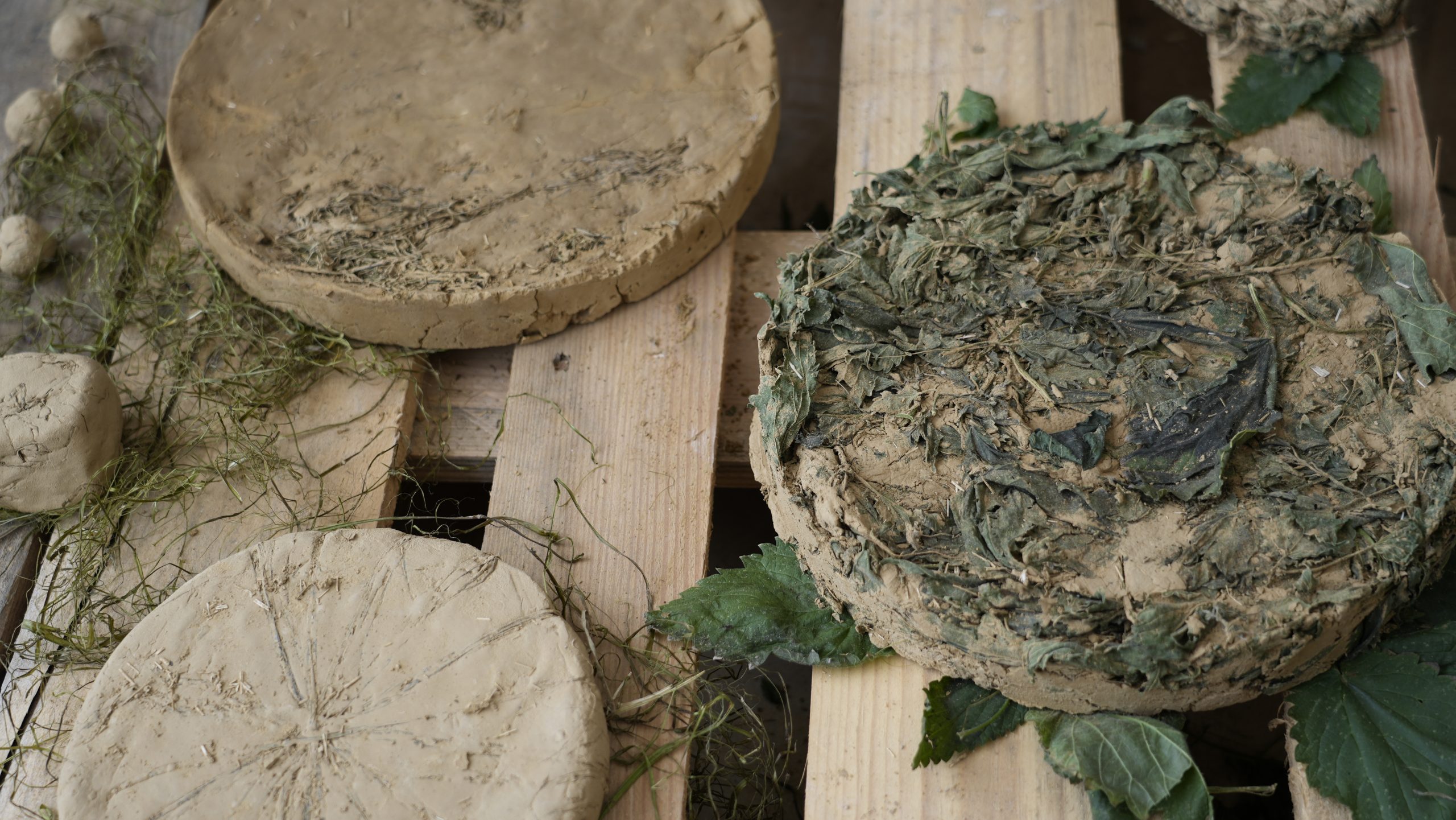 In June 2025, students presented their findings to Delcy Morelos, her collaborator Emiliano García (studio ASPJ), and the BC Studies team. Mixing loam from the Brussels areas with Japanese knotweed, cattail, flax, meadow grass, nettle, and reed, they revealed the qualities of these local fibres.