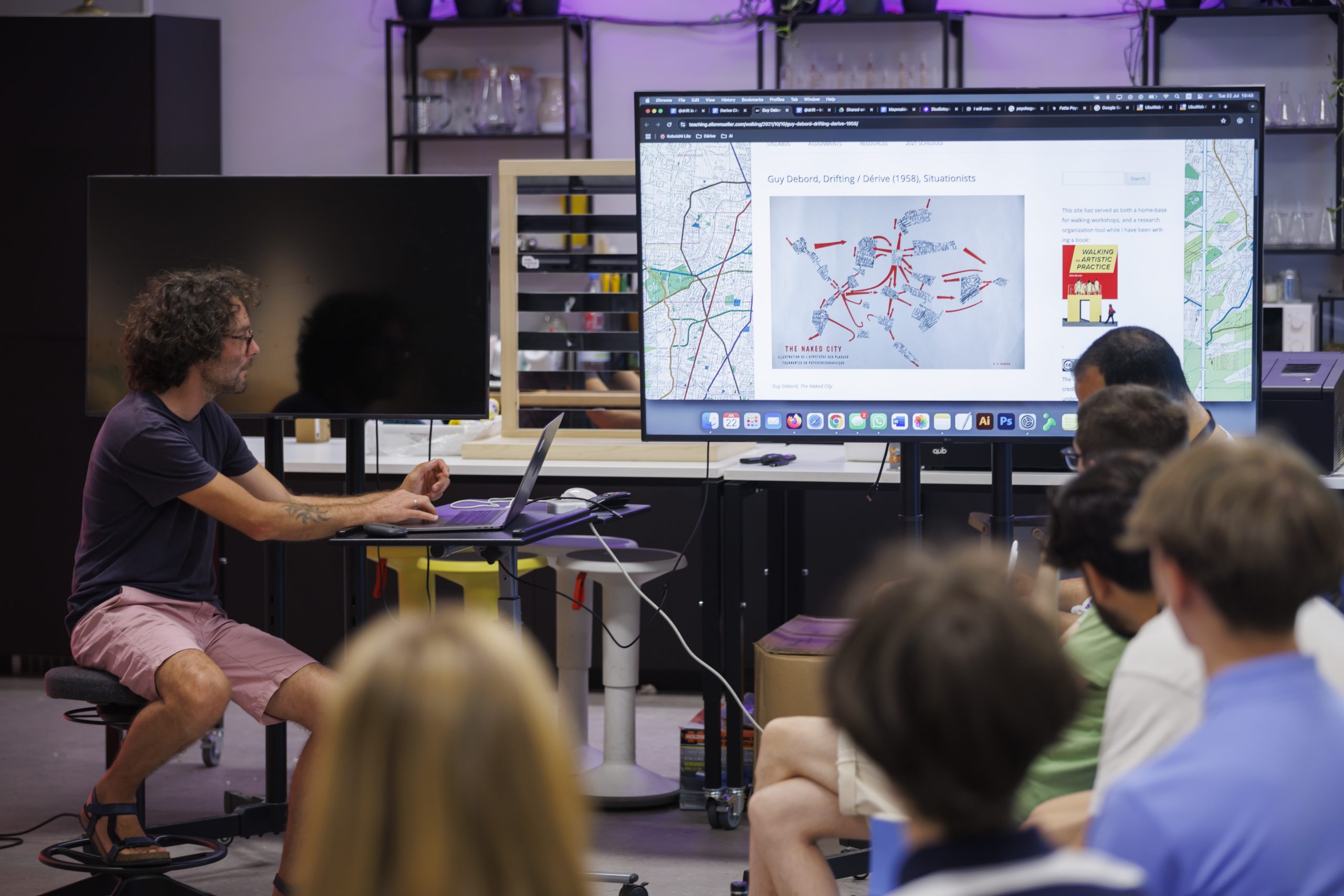 This was followed by a dérive experience, an unstructured urban exploration method that encouraged participants to navigate Cluj intuitively, without digital tools. By engaging directly with the city’s rhythms, textures and social dynamics, participants gathered insights that later informed their project work.