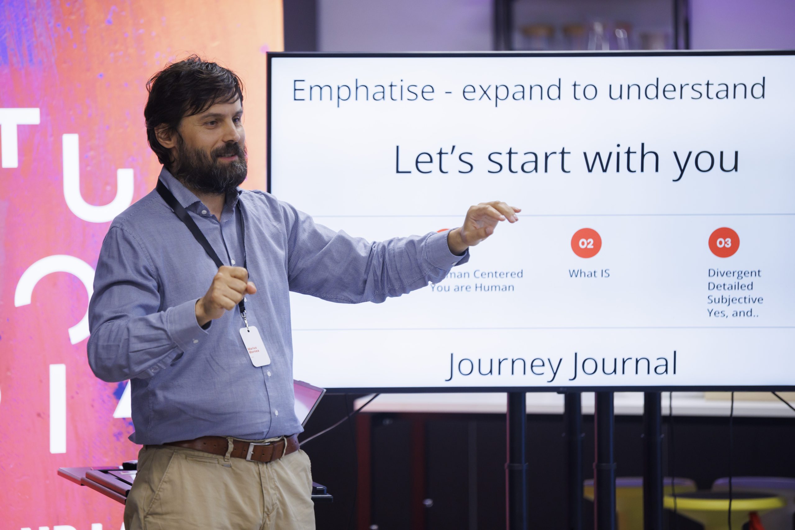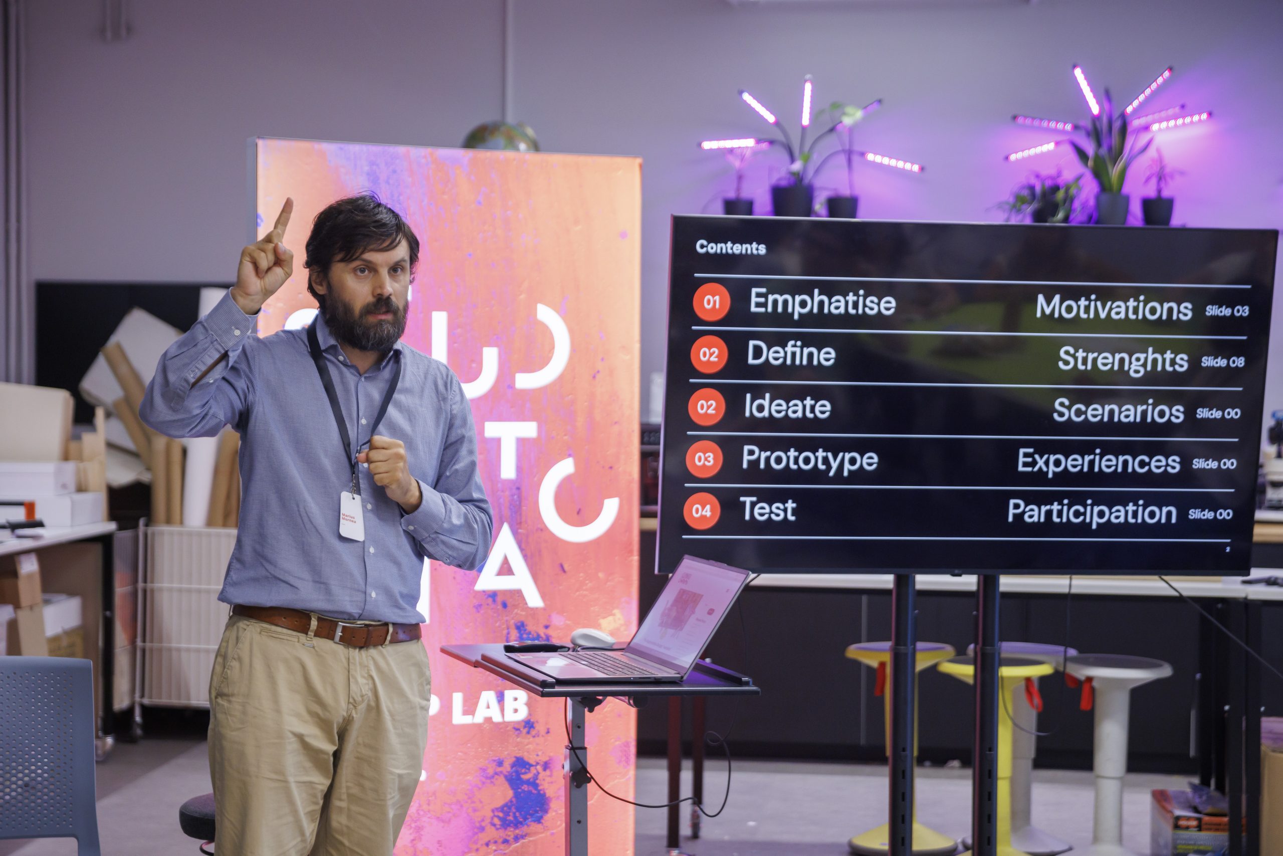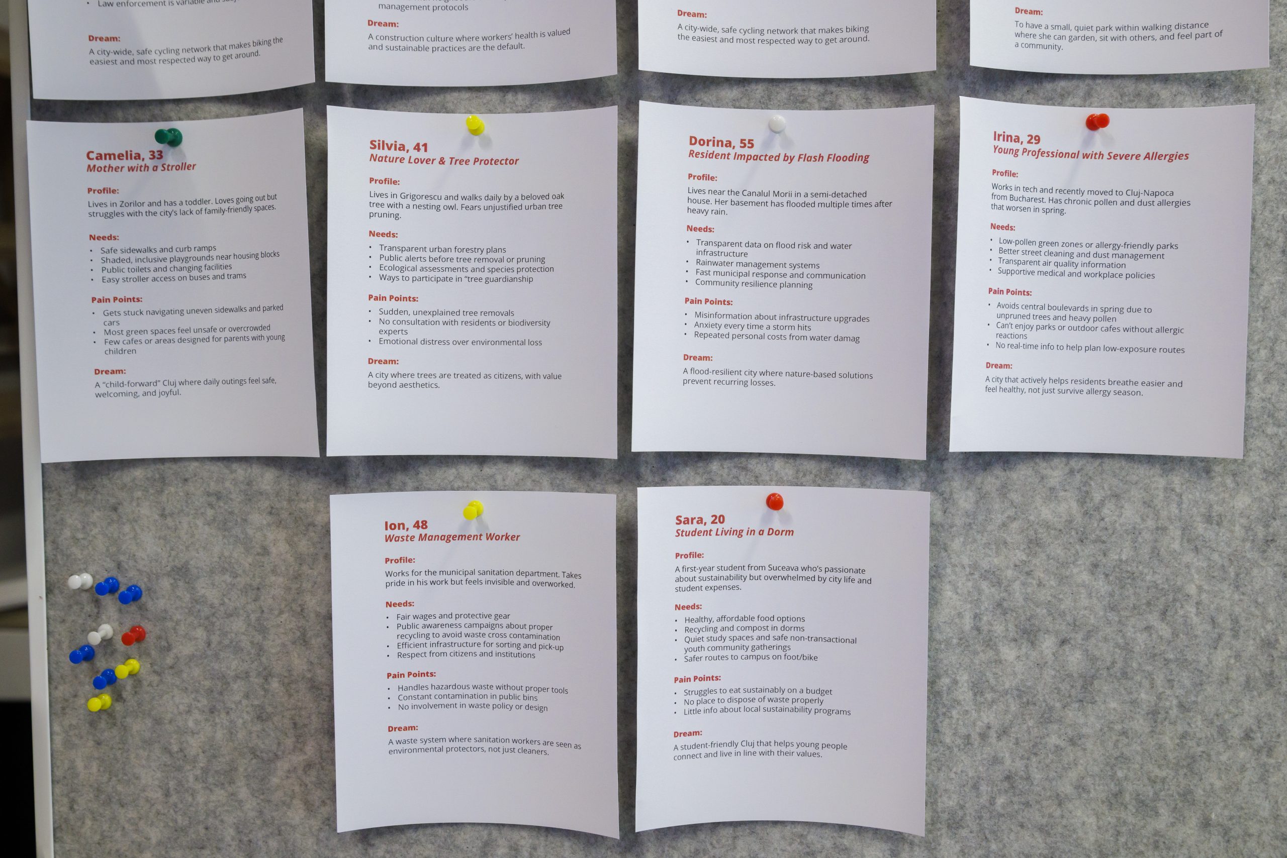 On the second day, these experiences were transformed into emotional maps, capturing not only routes, but also sensations, encounters and perceptions. Guided by facilitator Marius Mornea, participants were introduced to the Design Thinking framework, moving from empathy and problem definition to ideation, prototyping and iterative testing.
