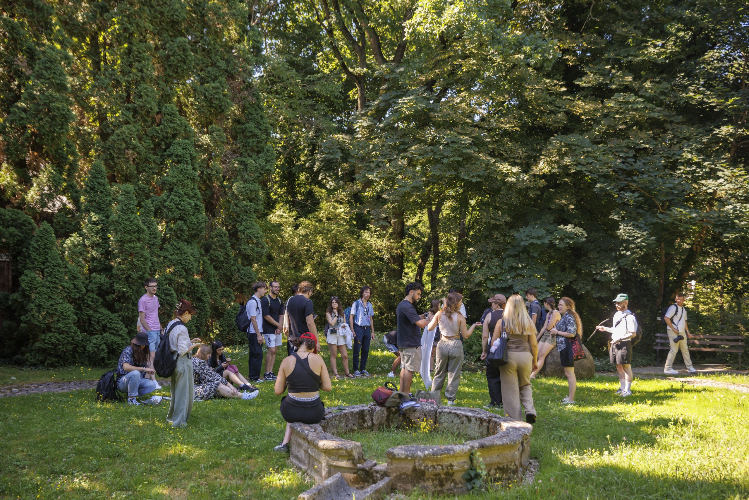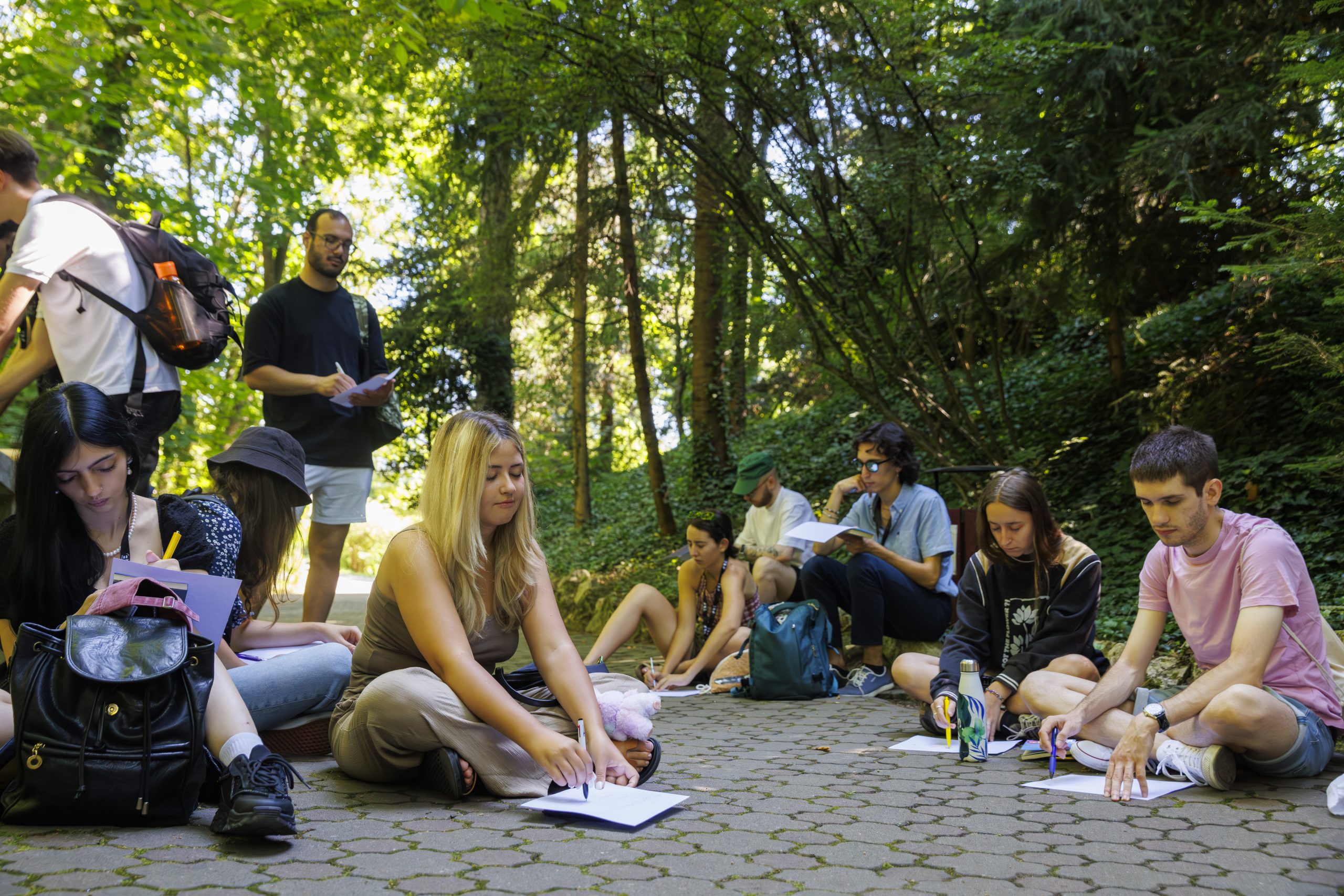 The program also featured artistic and sensory-based learning, including a workshop led by Portuguese artist Ânia Pais. Held in the Cluj Botanical Garden, the session encouraged participants to engage with nature beyond observation, drawing with their eyes closed, experimenting with natural materials, and collectively building visual narratives. The exercise emphasized intuition, collaboration and the role of art in understanding ecological systems.